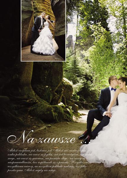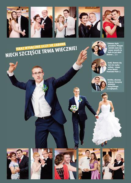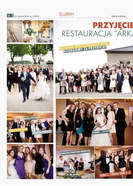 Ślubny Magazyn to Wasza gazeta w postaci pięknie ozdobionego, kolorowego magazynu, który wręczony byłby Gościom, przyjaciołom w podziękowaniu za pamięć, przybycie na nasz ślub. Żadnych schematów, indywidualne opracowanie, wesołe teksty, kadry – to wszystko ma stanowić pamiątkę na wiele, wiele lat.
